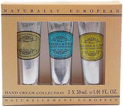 3'lü mini set Çeşitli kokular 3 x 30 ml hacim Naturally European Mini El Kremi Ginger & Lime – Verbena – Freesia & Pear Set 3 x 30 ml Naturally European Mini El Kremi Ginger & Lime – Verbena – Freesia & Pear Set 3 x 30 ml