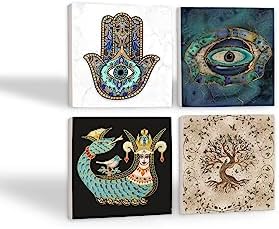 Nazar, Şahmeran, Hayat Ağacı, Fatma Ana Eli Taş Bardak Altlığı Seti – 4 Parça – Dekoratif, Rustik Mutfak Aksesuarı, 10×10 cm, Kaydırmaz Tabanlı, Şık ve Dayanıklı SC165