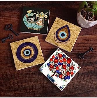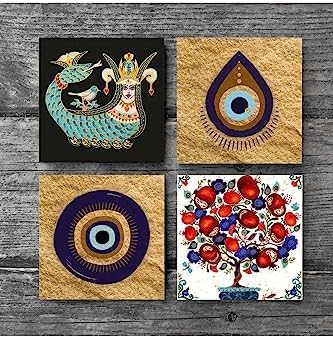 Nazar, Şahmeran, Nar Ağacı Taş Bardak Altlığı Seti – 4 Parça – Dekoratif, Rustik Mutfak Aksesuarı, 10×10 cm, Kaydırmaz Tabanlı, Şık ve Dayanıklı SC525