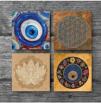Nazar, Yaşam Çiçeği, Çiçeği Taş Bardak Altlığı Seti – 4 Parça – Dekoratif, Rustik Mutfak Aksesuarı, 10×10 cm, Kaydırmaz Tabanlı, Şık ve Dayanıklı SC473