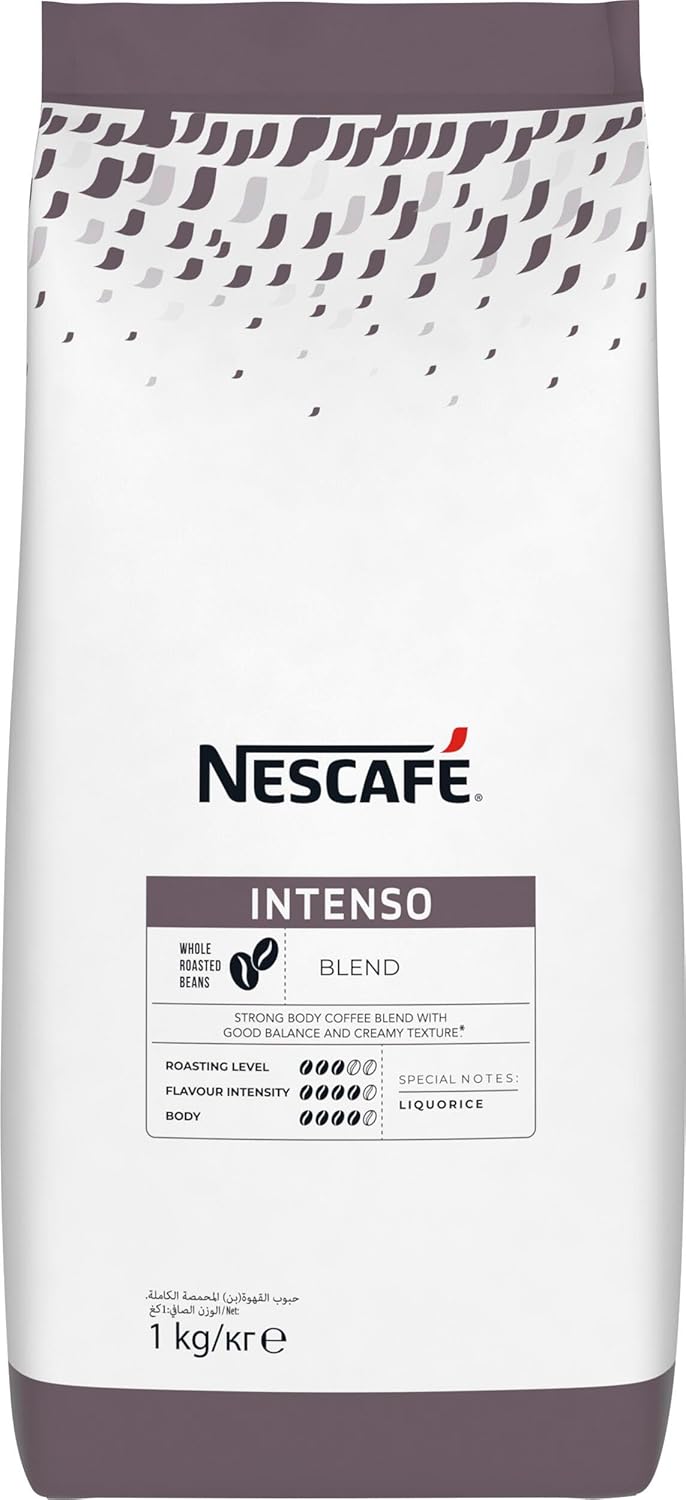 Kavruk ve bitter notalar Güçlü gövde Kolombiya-Brezilya-Vietnam harmanı Nescafe Intenso Çekirdek Kahve 1 kg Nescafe Intenso Çekirdek Kahve 1 kg