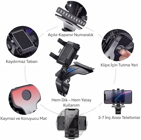 NIPPON, Araç içi Telefon Tutucu Klipsli – Torpido Üstü – Gösterge Paneli – Dikiz Aynası – Araba Telefon Tutucu