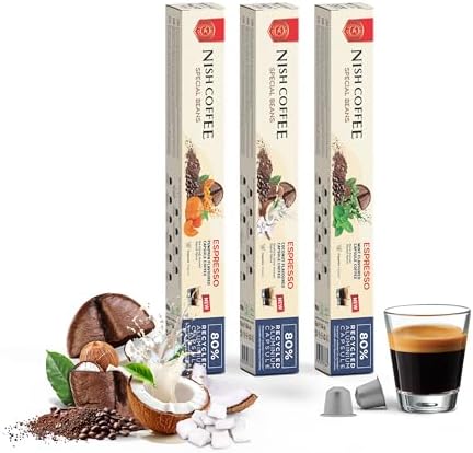 Yoğun ve zengin aromasıyla kaliteli bir kahve deneyimi sunar Nish Kahve Aromalı Kapsül Kahve 3'lü Set Bal Kabağı Nane Hindistan Cevizi 30 Adet