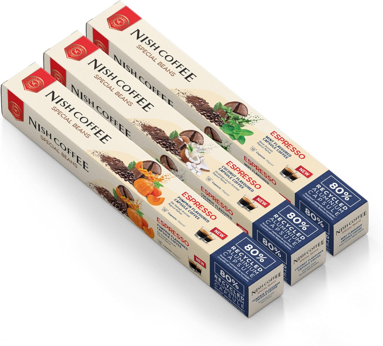 Nish Kahve Aromalı Kapsül Kahve 3'lü Set Bal Kabağı Nane Hindistan Cevizi 30 Adet