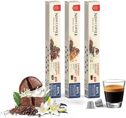 Yoğun ve zengin aromasıyla kaliteli bir kahve deneyimi sunar Nish Kahve Aromalı Kapsül Kahve 3'lü Set Karamel Vanilya Çikolata 30 Adet