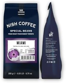 Yoğun ve zengin aromasıyla kaliteli bir kahve deneyimi sunar Nish Kahve Espresso Kahve Miami 2×250 Gram Çekirdek