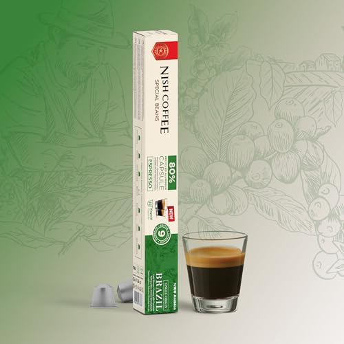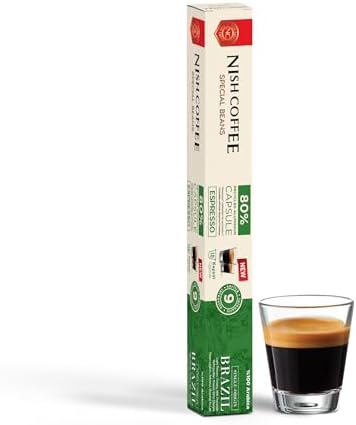 Yoğun ve zengin aromasıyla kaliteli bir kahve deneyimi sunar Nish Kahve Single Orijin Kapsül Kahve Brasil Nespresso Uyumlu 10 Adet