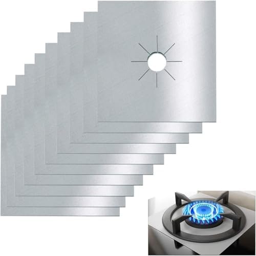 Ocak Brülörü Kılıfları, 10'lu Paket Ocak Üstü Koruyucu, 0.2 MM Çift Katmanlı, Yapışmaz Yeniden Kullanılabilir Gaz Ocağı Koruması,Kesilebilir Kolay Temizlenebilir Boyut 27×27 Cm (Gümüş)