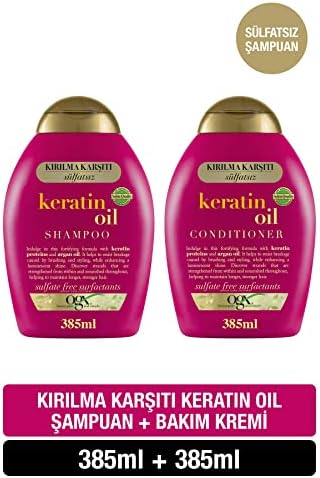 ogx keratin oil kırılma karşıtı sülfatsız 385 ml şampuan + 385 ml saç kremi 2'li set