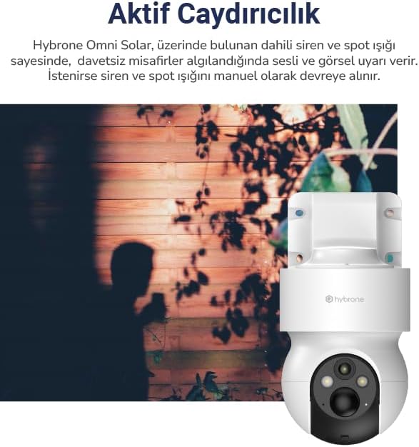Omni Solar Dış Ortam Bataryalı ve Güneş Enerjili Wi-Fi Akıllı Kamera, Renkli Gece Görüşü, 360 Derece Görüntüleme, İnsan Algılama, Siren