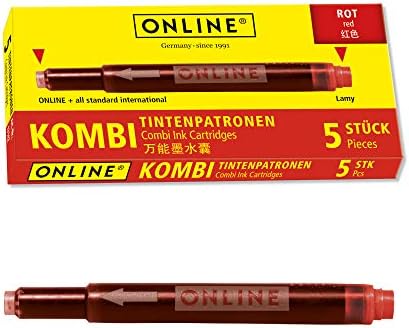 Online Combi Cartridge Red Renk: Kırmızı Dolma kaleminize kolay ve güvenli takılabilir Kutu içeriği 5 adet kartuş barındırır Online Combi Cartridge Red