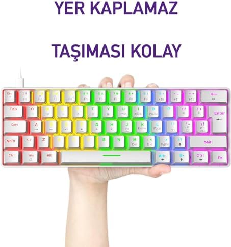【Taşınabilir Gerçek Mekanik Klavye】: RGB klavye, kompakt tasarımı sayesinde masanızda fazladan yer kaplamaz ve fareyi hareket ettirmek için size daha fazla alan sağlar. Ergonomik tasarımı; oyun sırasında ve uzun yazı yazma zamanlarınızda konforunuzu sağlayacaktır. 【RGB Aydınlatma】: 20 çeşit farklı RGB ışık modu, geceleri size oyun oynarken veya yazı yazarken inanılmaz keyif verir. RGB modunu özelleştirebilirsiniz, modlar arasında geçiş yapabilir, sabit ışık rengini seçebilir veya ışığın parlaklığını yükseltip azaltabilirsiniz. Tam anlamıyla sizin konforunuz için tarafından tasarlandı. Aradığınız tüm RGB özellikler bu klavyede mevcut. 【Kırmızı Switch】 : Ürünümüz kırmızı switchlidir. Kırmızı switch konforuyla kullanabilirsiniz. 【Tam Tuş Konforu】: Her tuş birbirinden bağımsız şekilde hareket eder, böylelikle aynı anda birden fazla tuşa basılabilir. Herhangi bir gecikme yaşanmaz. RGB klavye oyun oynarken ve yazı yazarken size fazladan hız katar. Oyuncu Klavyesi RGB Klavye 20 Modlu Ayarlanabilir Renk Seçeneği RGB Suya Ve Toza Dayanıklı Klavye Oyun Klavyesi Oyuncu Klavye Mekanik Klavye Kırmızı Switch (Beyaz)