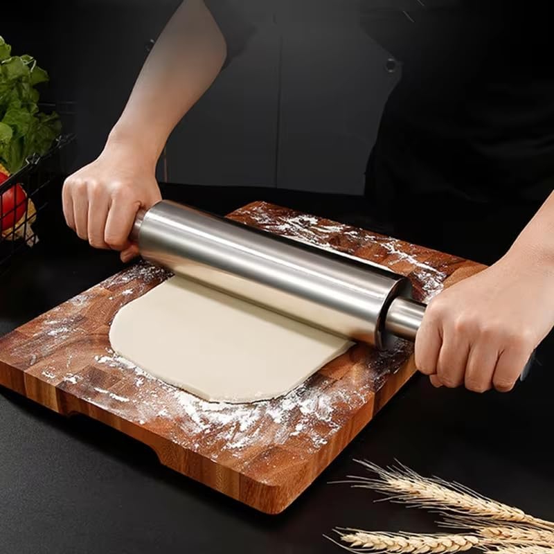 Paslanmaz Çelik Merdane – Hamur Açma Merdanesi | Ergonomik Tutma Saplı | Hijyenik & Kolay Temizlik | Hamur ve Kurabiye İçin İdeal