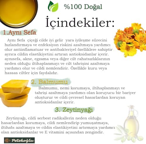 Petekoğlu (100ML) El Yapımı Aynısefa Çiçeği Kremi Balmumu Zeytinyağı Kremi Merhemi Onarıcı Nemlendirici krem