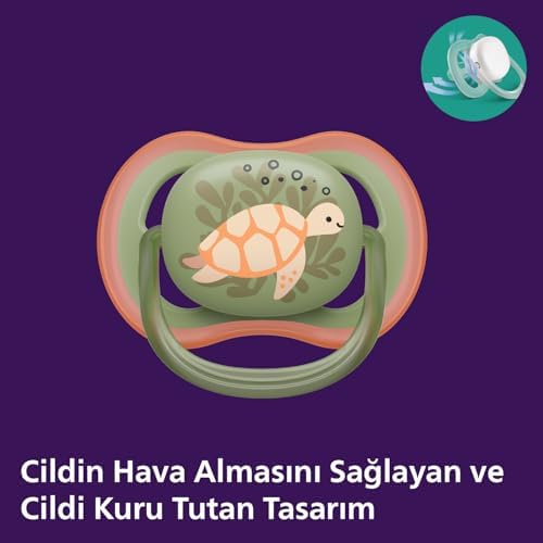 Ekstra Geniş Hava Delikleri, Bebeğinizin Cildinin Nefes Almasını Sağlar Ortodontik ve BPA İçermez 6-18 Ay, 2'li Emzik Paketi 4 Ekstra Geniş Hava Deliği Mikrodalgada Kolay Sterilizasyon ve Taşıma Çantası Philips Avent Ultra Air Emzik 6-18 Ay, 2'li Paket, Erkek