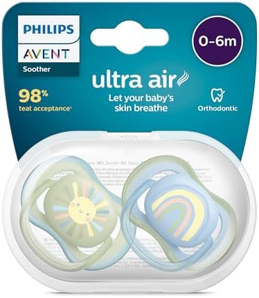Philips Avent Ultra Air Emzik, Erkek Bebekler için 0-6 Ay, 2’li Paket, Ortodontik Silikon, Geniş Hava Delikli, Mikrodalga Sterilize Edilebilir, BPA İçermez, Taşıma Kutulu, SCF085/58