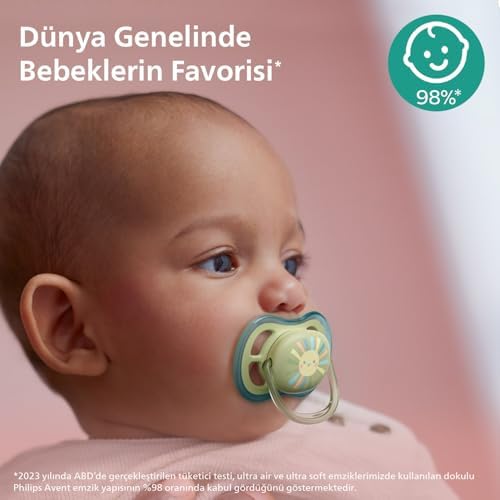 2’Lİ AVANTAJLI PAKET: Kutuda 0-6 ay arası bebekler için uygun, farklı renklerde iki adet Ultra Air emzik bulunur. BEBEĞİNİZİN CİLDİ NEFES ALSIN: Ekstra geniş hava delikleri sayesinde hava dolaşımı sağlanır, cilt kuru kalır. YUMUŞAK VE ORTODONTİK EMZİK UCU: Simetrik silikon tasarımı, bebeğinizin damak, diş ve çene gelişimini desteklerken kolay kavrama ve doğal ağız gelişimi sağlar. BPA İÇERMEZ, GIDA UYUMLU: Zararlı kimyasal içermez; %100 gıdaya uygun yumuşak silikon malzemeden üretilmiştir. KOLAY STERİLİZASYON VE TAŞIMA: Mikrodalgada sterilize edilebilen özel taşıma çantası ile hijyenik kullanım sunar. Philips Avent Ultra Air Emzik, Erkek Bebekler için 0-6 Ay, 2’li Paket, Ortodontik Silikon, Geniş Hava Delikli, Mikrodalga Sterilize Edilebilir, BPA İçermez, Taşıma Kutulu, SCF085/58
