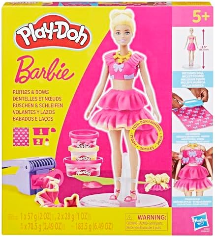 Beş yaş ve üzeri çocuklar için oyuncakları ve Play-Doh setleri, bu yaratıcı moda tasarım kiti ile bir araya geliyor Gerçek bebek dahil: Play-Doh ile bebek kıyafetleri yapabilirsiniz Önceden hazırlanmış levha, oyuncak bebek kıyafetleri yapmak için eğlenceli tasarımlara sahip, kumaş gibi görünen 68 gram düzleştirilmiş Play-Doh oyun hamurudur (buğday içerir) ÖZEL SAÇ STİLLERİ YARATIN: Play-Doh saç kalıbı ile son derece sevimli topuzlar tasarlayın. Çocuklar ayrıca elleriyle kendi stillerini yaratabilir Farklı stiller için iki aparatla birlikte gelen fırfır aletiyle Play-Doh oyun hamurunu bastırarak her türlü kıyafete fırfır ekleyin Play-Doh Fırfır ve Fiyonk Oyuncak Bebek Seti