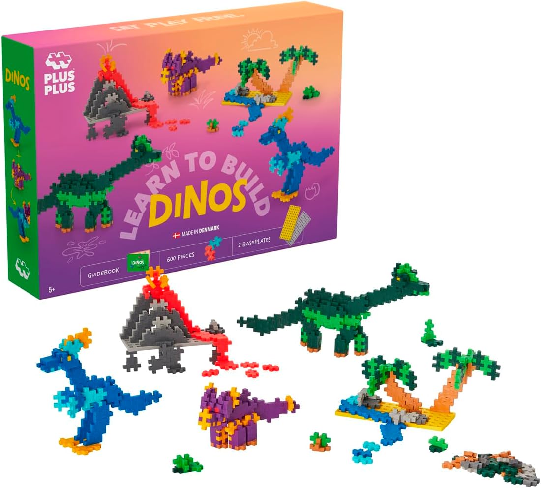 PLUS PLUS 9603918 Dahiyane yapı oyuncağı, Learn to, dinozor, yaratıcı yapı taşları, 600 parça, çok renkli