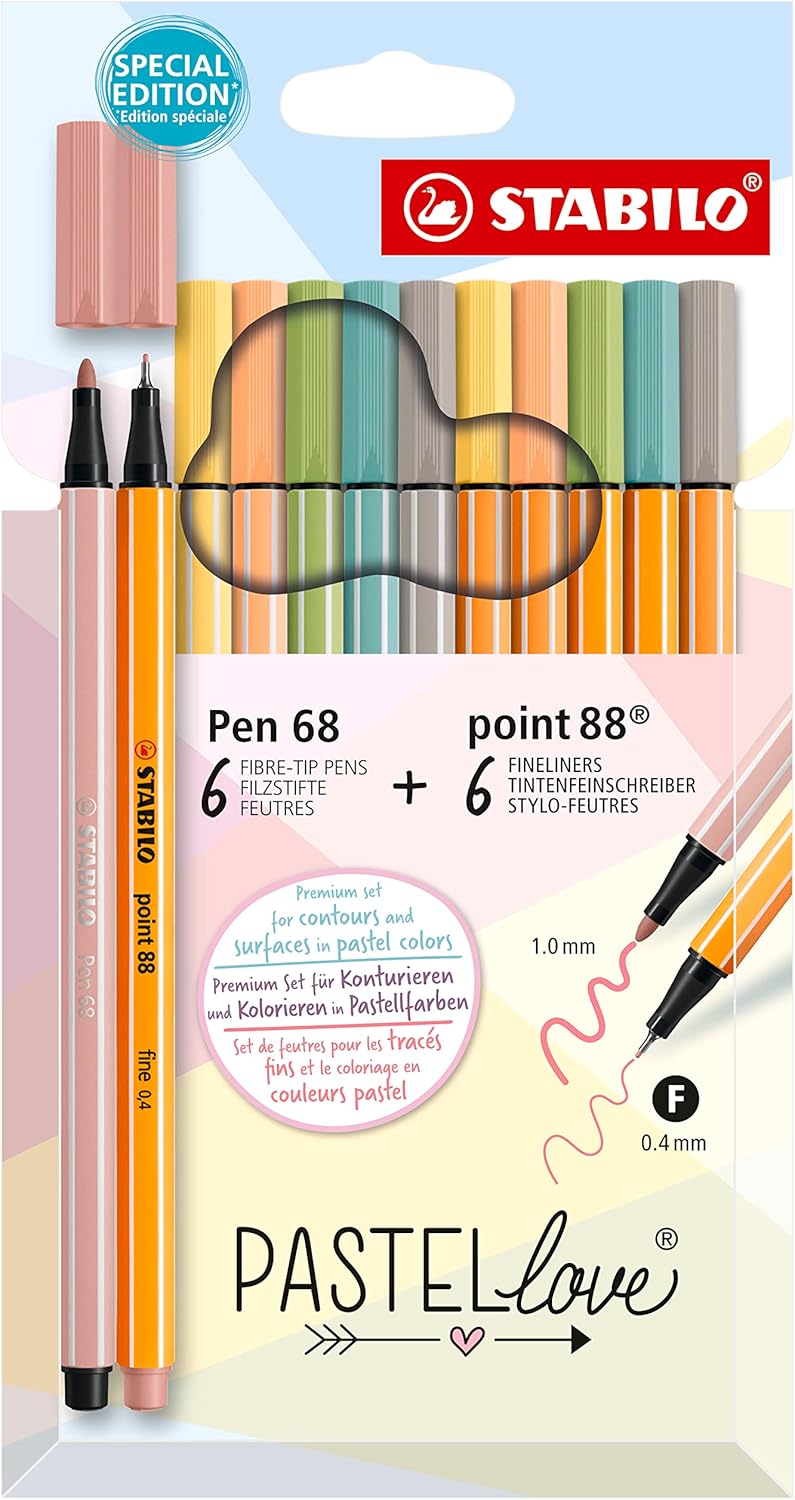 point 88 & Pen 68 Pastellove – İnce Keçe Uçlu Kalem ve Keçe Uçlu Boya Kalemi – 12'li Paket – Çeşitli Renkler
