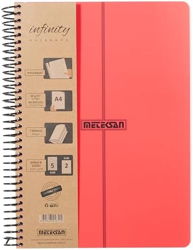 350 mikron PP (plastik) kapak 60 gr 1. hamur kağıt Pet spiralli 210 yaprak, 420 sayfa, 7 konulu (5 kareli, 2 çizgili) Türkiye'de üretilmiştir Primary Serisi, A4, 7 Konulu (5 Kareli, 2 Çizgili) 210 Yaprak PP Kapaklı Spiralli Defter, Kırmızı
