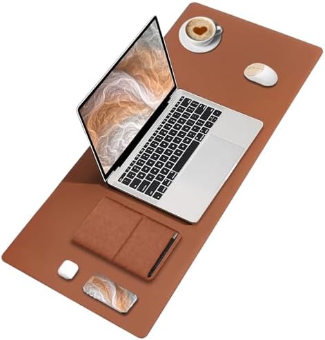 PU Deri Mouse Pad Dikişli Kenar Dayanıklı Büyük Boy Çift Yönlü Kullanım Ofis Masa Matı Sümen (KAHVERENGİ, 70X30 L)
