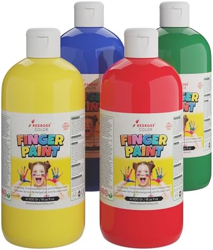 Dayanıklı yapısıyla uzun süre kullanılabilir Red Rose Ana Renkler Parmak Boyası 4'lü Set 4×500 gr