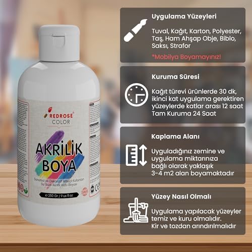 Dayanıklı yapısıyla uzun süre kullanılabilir Red Rose Ara Renkler Parmak Boyası 6'lı Set 6×60 ml