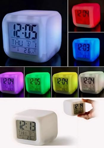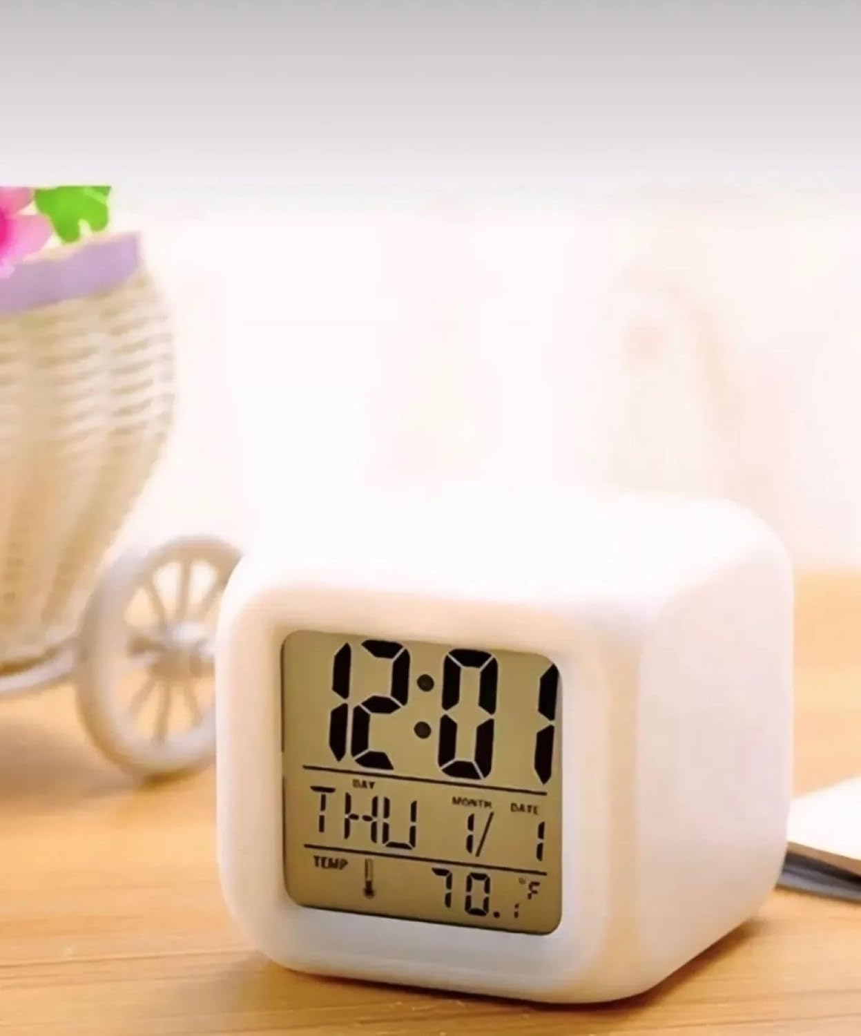 Renk Değiştiren Küp Şeklinde Dijital Masa Saati: Alarm, Termometre ve Tarih Özellikli
