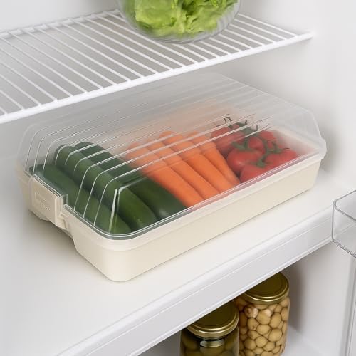 Şeffaf Kapaklı Buzdolabı Düzenleyici Kutu | 32×18 cm Plastik Gıda Organizeri | Kar Beyaz Taban | Kapaklı Saklama Kutusu, Buzdolabı ve Mutfak için Pratik Çözüm