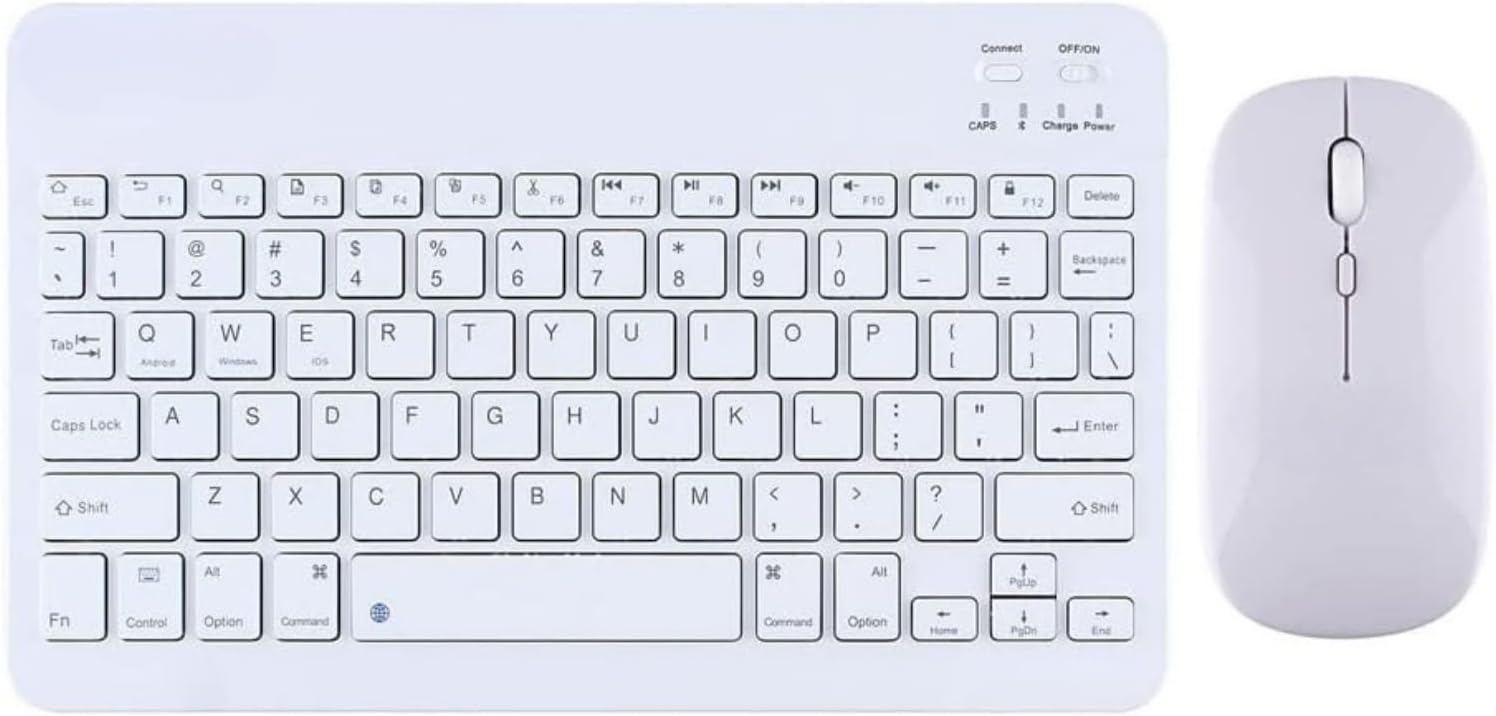 Şık Tasarımlı Bluetooth Kablosuz Klavye ve Mouse Seti |, iOS ve Windows Uyumlu | Şarj Edilebilir, Taşınabilir ve Sessiz Tuşlu Set (Beyaz)