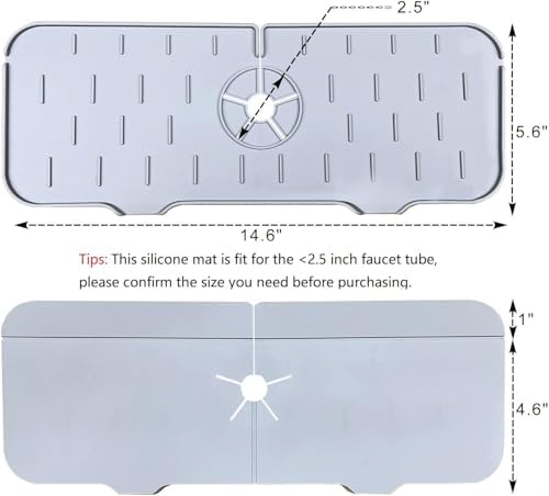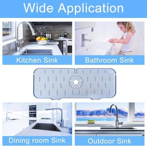 Silikon Musluk Sıçrama Önleyici Ped, Gri Su Tutucu Mat, Mutfak ve Banyo Tezgahı & Koruyucu, Lavabo Kenarı için Kaymaz Musluk Kapağı, Damlama Engelleyici Ped, 37 * 14 cm