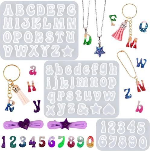 Silikon Reçine Kalıplar, 3 Parça Epoksi Reçine Kalıbı, Küçük Numara ve Harf Kalıpları, Epoksi için Silikon Kalıp, Kendin Yap Küpe Kolye Pandantif Takı Dekorasyonu için