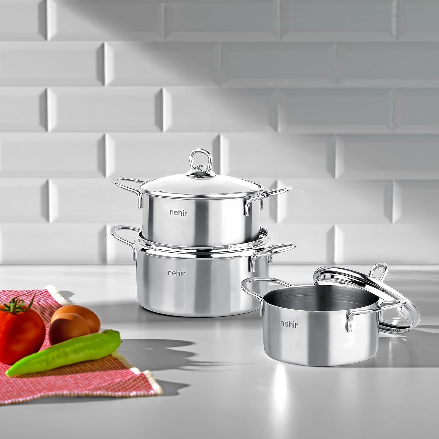 Silver 6 Parça Paslanmaz Çelik Mini Tencere Seti (12-14-16 cm)