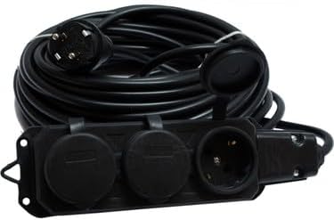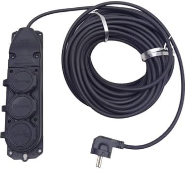 KAUÇUK SİYAH RENK TOPRAKLI KAUÇUK SEYYAR ELEKTRİK KABLOSU CCA 3 X 1,5 mm 20 mt 3 LÜ PRİZ