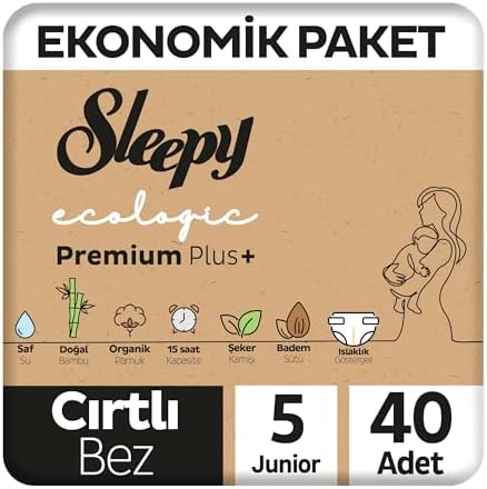 Hipoalerjenik 15 saat kapasite Islaklık göstergesi Paraben içermez Sleepy Ecologic Ekonomik Paket Bebek Bezi 5 Numara Junior 40 Adet