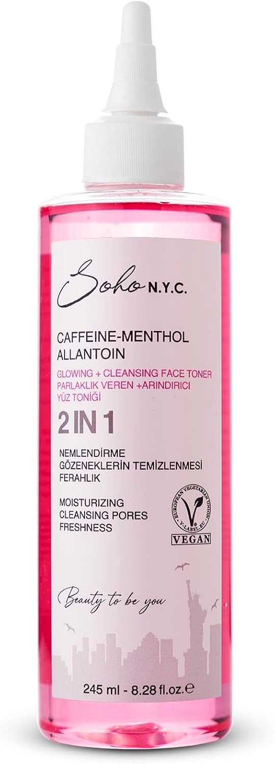 Vegan İkisi bir arada çözüm Akne karşıtı tonik Gözenekleri sıkılaştırmaya yardımcı olur SOHO N.Y.C. Parlaklık Veren Yüz Toniği 245 ml