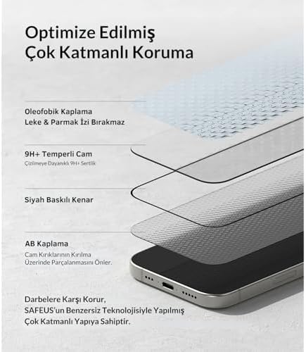 SAFEUS 9H+ SEVİYESİNDE DARBEYE DAYANIKLI, TAM KAPLAYAN, PARMAK İZİ BIRAKMAYAN SAFİR EKRAN KORUYUCU CAM Tam Kaplayan Parmak İzi Bırakmayan Safir Ekran Koruyucu Cam, 17 Air İle Uyumlu
