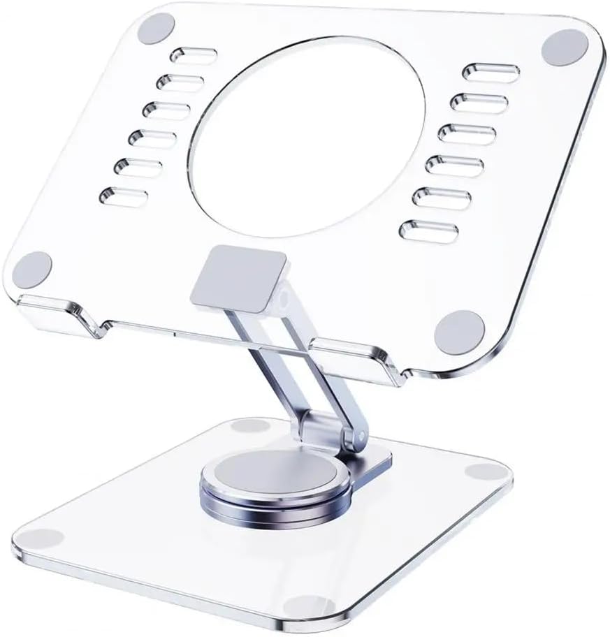 Herhangi bir açıya kolay ayarlama için 360 derece mekanik döner şaft. Dayanıklılık ve sararma için kristal doku ve yüksek dereceli akrilik malzeme. Çok açılı eğim ve uzak ve yakın germe ile ergonomik tasarım göz yorgunluğunu azaltmak ve rahat duruş teşvik etmek. Açık ısı dağılımı teknolojisi, geliştirilmiş performans için dizüstü bilgisayar sıcaklığını 50 düşürür. Mükemmel destek ve stabilite için çift çubuk tasarımı ile alüminyum alaşımdan yapılmış kararlı metal çerçeve. Taşınabilir Dizüstü Standı Çok Fonksiyonlu 360 Derece Dönen Dizüstü Tablet Cep Telefonu Standı (Şeffaf 360 Stand)