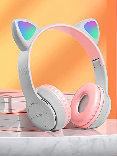 yumusak ped teknosepetim Mikrofonlu Işıklı Renk Değiştiren Cat Kedi Kulaklık gri-pembe Gamer Oyuncu Kulaklığı P47m Kulaklık çocuk Yetişkin Uygun,, Gripembe, Small