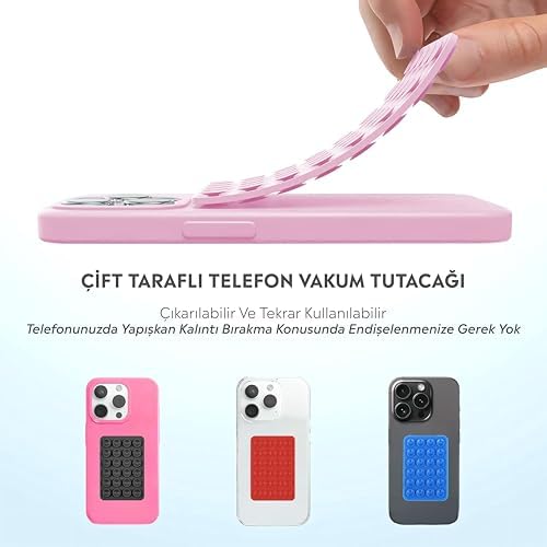 Kare Öpücüklü Silikon Tutucu, akıllı telefonunuzun her türlü pürüzsüz yüzeye rahatça yapışmasını sağlar. Mutfakta yemek yaparken tarif videolarını izleyebilir, banyoda duş alırken sevdiğiniz diziyi takip edebilir ya da makyaj yaparken ellerinizi tamamen serbest bırakabilirsiniz. Bu yenilikçi tutucu, aynalar, pencereler ve düz duvarlar gibi çeşitli yüzeylere güçlü bir şekilde tutunarak telefonunuzla her yerde rahat bir deneyim sunar. Ürünün sunduğu kolaylık, evde her türlü aktiviteyi daha keyifli hale getirir. Özel öpücüklü silikon yapısı ile hem güvenli bir tutuş sunar hem de estetik olarak şıklık katar. İster evde ister dışarıda, telefonunuz her zaman güvenle eller serbest kullanılabilir. Telefon Arkasına Yapışan Silikon Vantuzlu Telefon Kılıfı Tutucu Araç Telefon Tutucu Ahtapot Vakumlu Telefon Tutucu (Açık Pembe (Çift Taraflı))