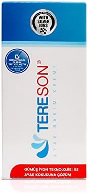 Ayak kokusunu etkisiz hale getirmek için özel olarak geliştirilmiş formülüyle kötü kokuları yok eder Gün boyu etkisini korur.İçeriğindeki bileşenler sayesinde ayakları ferahlatır ve nemlenmesini sağlar Gümüş iyonlu formülü ile kötü kokular ile savaşır Gün boyu ferah, ve güzel kokan ayaklara sahip olmanızı sağlar Tereson Koku Karşıtı Ayak Bakım Kremi 50 Ml (gümüş Iyon Korumalı)