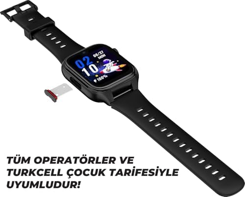 Tiger Kids Akıllı Çocuk Saati, Görüntülü Görüşme, AMOLED Ekran,, S, 5MP Kamera, IP68 Su Geçirmez, Uzun Pil Ömrü, SOS, Dokunmatik Ekran, 4G, Silikon Kayış, Siyah