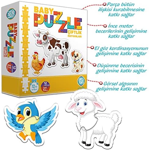 Düşünme becerilerini geliştirir Motor kas gelişimine katkı sağlar Görsel algı gelişimine katkı sağlar El-göz koordinasyonu gelişimine katkı sağlar Toys Baby Puzzle Çiftlik Hayvanları