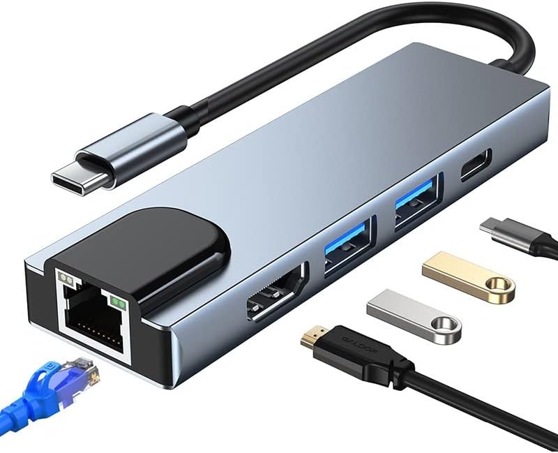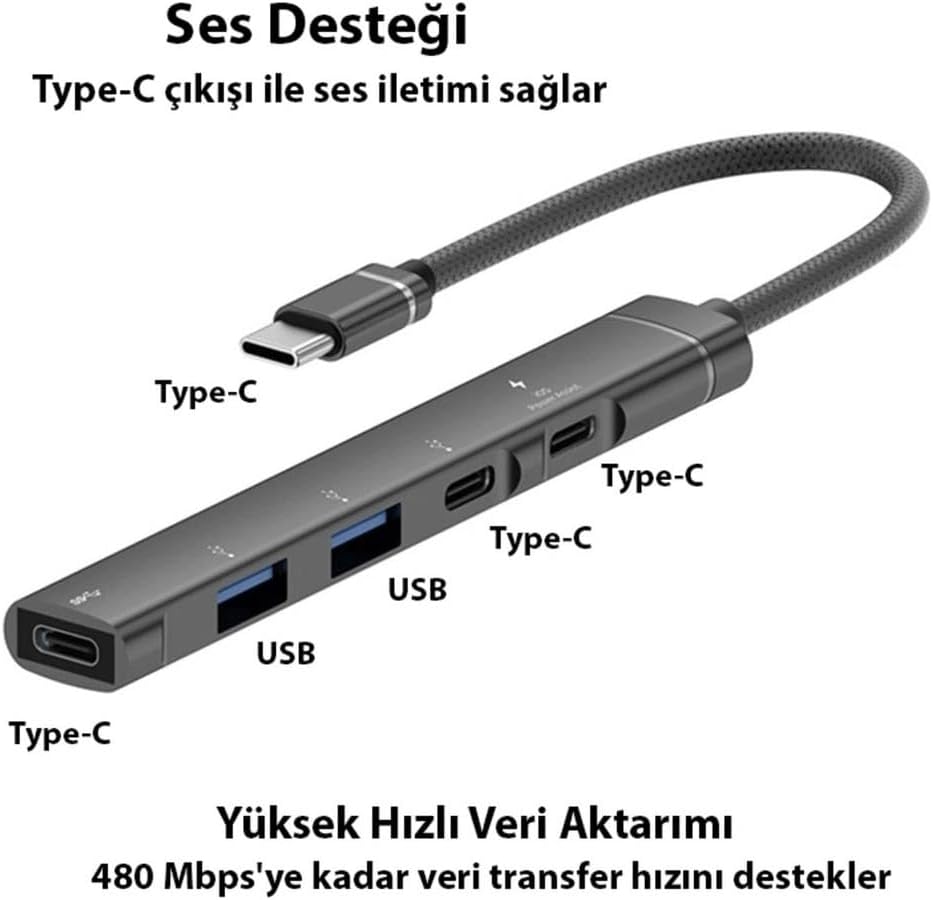 TR-12 5 Port Uyumlu HUB Type-C to 4K HDTV – 100Mbps Ethernet – 2ad USB3.0 – PD 20V3A Hızlı Şarj