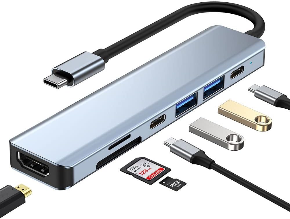 TR-35 7 Port Mac Uyumlu Thunderbolt 3 ile Uyumlu HUB Type-C to 4K HDTV 2x USB3.0 2x USB C PD Şarj Micro SD ve SD Kart Okuyucu