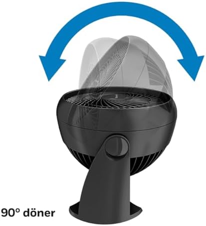 TurboForce Turbo Vantilatör HT900E, Sessiz Soğutma, 90 Dereceye Kadar Ayarlanabilir Eğim Açısı, 3 Hız Ayarı, Duvara Montaj, Masa Vantilatörü – Siyah