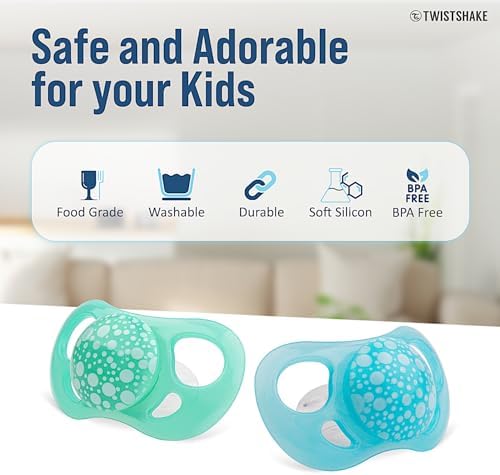 Bebeklerin diş çıkarma döneminde rahatlamalarını sağlar Güvenli ve yumuşak malzemelerden üretilmiştir Kolayca temizlenebilir ve taşınabilir Twistshake Bebek Emziği 2’li, Mavi Yeşil, 6+ Ay