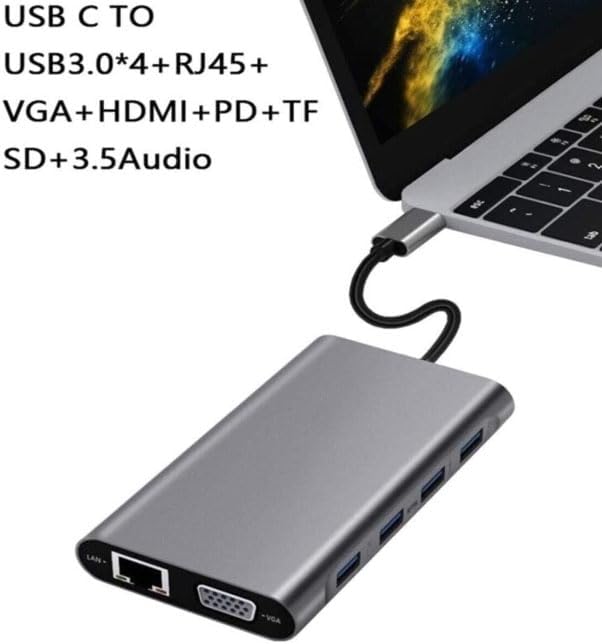 Type-C To HDMI Adaptör 11 In 1 Dört USB 3.0 Bağlantı Noktası 4K HDMI VGA Type C PD USB3.0 Ethernet SD TF Kart Okuyucu 3.5mm AUX Pro Air Uyumlu
