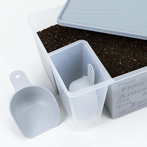 Kaliteli plastik malzemeden üretilmiştir, BPA içermez. Su geçirmez kapağı, içeriğin nem, rutubet ve tozdan korunmasını sağlar. 160 ml ve 70 ml olmak üzere iki ölçü kaşığı, gıda ile temas etmeyen özel bölmede hijyenik şekilde saklanır. Şeffaf yapısı, içeriğin kolayca görünmesini sağlar. Ürün hacmi: Un: 3,5 kg, şeker:5 kg Un ve Şeker Kabı(Ölçü Kaşıklı)